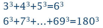 编写一个应用程序,找到一些相续正整数的立方和正好等于另一个整数的立方。如下图所示: