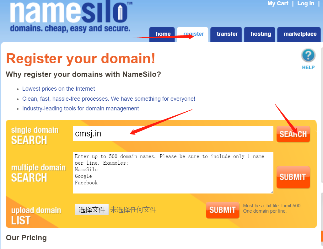 直接去官网:www.namesilo.com